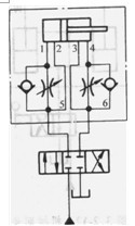 另一種接入節(jié)流閥以改變液壓缸運動速度的辦法是在液壓缸行程末端有兩個引出口,如圖3 .2-6所示,當活塞左行把口2關(guān)閉時,油通過口1經(jīng)節(jié)流閥5流回油箱,從而使液壓缸減速。同樣,當右行而關(guān)閉出油口3時,節(jié)流閥6起作用而使液壓缸減速。