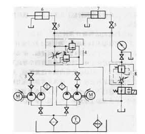 圖4回轉窯檔輪液壓系統(tǒng)圖