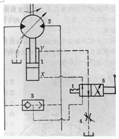 1-變量缸;2-馬達;3-梭閥;4-節(jié)流閥;5-手動換向閥