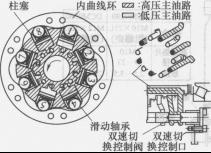 當(dāng)馬達(dá)上雙速切換控制口壓力為0. 2MPa或更低時,壓力油與配油軸上的六個配油口相通(全排量工作模式);當(dāng)馬達(dá)上雙速切換控制口壓力為1.O~4. 9MPa時,壓力油只與配油軸上的三個配油口相通(半排量工作模式)。