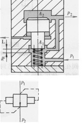 在同一系統(tǒng)中,往往有一個泵要向幾個執(zhí)行元件供油,而各執(zhí)行元件所需的工作壓力不盡相同的情況。若某執(zhí)行元件所需的工作壓力較泵的供油壓力低時,可在該分支油路中串聯(lián)一減壓閥。油液流經(jīng)減壓閥后,壓力降低,且使與其出口處相接的某一回路的壓力保持恒定。這種減壓閥稱為定值減壓閥。 對減壓閥的要求是:出口壓力維持恒定,不受進口壓力、通過流量大小的影響。