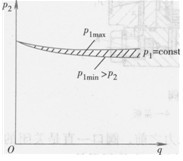 減壓閥的P2-q特性曲線如圖6-30所示。減壓閥進口壓力Pi基本恒定時,若通過的流量g增加,則閥口縫隙XR加大,出口壓力略微下降。先導(dǎo)式減壓閥出油口壓力的調(diào)整值越低,它受流量變化的影響就越大。
