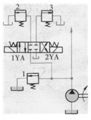 l、2、3、4-單向閥5-電磁換向閥 1-溢流閻2-=位二通電磁閥