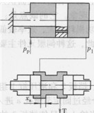 圖6-40a為單邊滑閥控制式,它有一個控制邊?;钊系淖枘徭軱使液壓缸左右兩腔相通??刂七叺拈_口量x??刂屏烁字杏鸵旱膲毫土髁?,從而改變了缸的運動速度和方向。