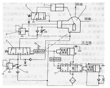 7-液壓負荷控制閥。8-液壓助力缸9-減震阻尼裝置10-下降速度調(diào)節(jié)閥 11-流量控制閥