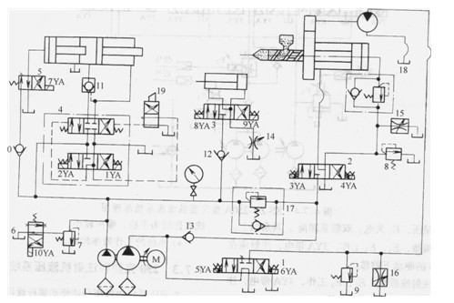 減壓過程:2YA、9YA、10YA帶電,合模缸失壓,完成減壓排氣動作。