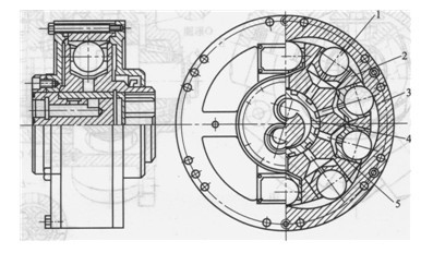 圖4滾輪傳力式內(nèi)曲線馬達的結(jié)構(gòu)