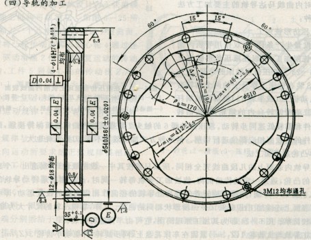 (2)對(duì)基圓進(jìn)行精確分度。當(dāng)導(dǎo)軌曲線凹凸交接的過(guò)渡段在1~1.5°時(shí),分度精度取±3’~±5’。