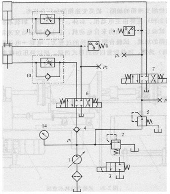 1、2一先導(dǎo)詞壓溢流閥;3-三位四通電磁換向閥;4一插裝閥;5-壓力表
