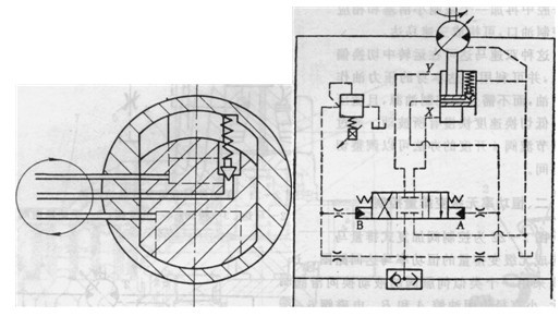 從圖2可以看出,這種變排量控制是靠加一個(gè)壓力信號(hào)到變量控制閥上,信號(hào)壓力值決定了偏心溢流閥的調(diào)整值,而偏心溢流閥的調(diào)定值又決定了馬達(dá)的排量,由此構(gòu)成一個(gè)液壓—一機(jī)械反饋的閉環(huán)控制。這種控制方式允許預(yù)先設(shè)定馬達(dá)變排量范圍內(nèi)的任一排量值,并據(jù)此在整個(gè)運(yùn)行速度范圍內(nèi)使馬達(dá)平穩(wěn)地加速或減速。調(diào)整比例壓力閥就可以實(shí)現(xiàn)速度調(diào)節(jié)。這種結(jié)構(gòu)顯然適宜于電液遙控以及要求用微處理機(jī)來控制的場合。