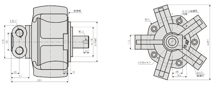 YLM11-700~1300外五星液壓馬達安裝聯(lián)接尺寸圖