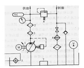 1- 油箱2-供給切斷閥3-發(fā)動(dòng)機(jī)驅(qū)動(dòng)泵4一壓縮空氣驅(qū)動(dòng)泵5-電動(dòng)泵6-冷卻器7一過濾器8-殼體泄油管9一溢流閥10-壓力管11-回油管