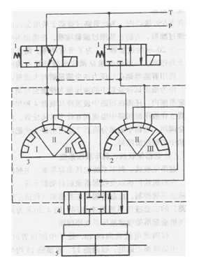 液壓缸2-動(dòng)翼3-操縱桿P-壓力油T-回油